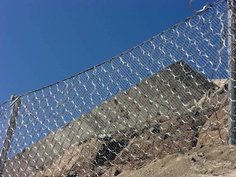 環形防護網采用熱鍍鋅工藝,在落石沖擊過程中能發生自身幾何形態改變、具有更為突出柔性特征的環形防護網來取代鋼絲繩網,以此為基礎的攔石網能夠實現3000kJ以上的落石阻攔,并能進一步簡化結構形式(如支撐繩和減壓環的配置)、方便局部受損后的維護修復,環形防護網已經成為一種替代鋼絲繩網系統的新型攔石網(RXI型),實現了SNS被動防護系統的更新換代和升級。