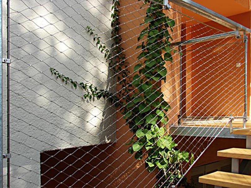 景區(qū)棧道防護繩網是采用多股不銹鋼絲擰編而成的不銹鋼絲繩編織而成,景區(qū)棧道防護繩網材質可分為:304不銹鋼,316不銹鋼等。防腐蝕能力非常好,即使長期至于室外使用壽命也可長達10年~30年之久。景區(qū)棧道防護繩網的編織工藝:采用交叉編織或卡扣固定的編織方法。