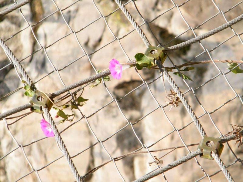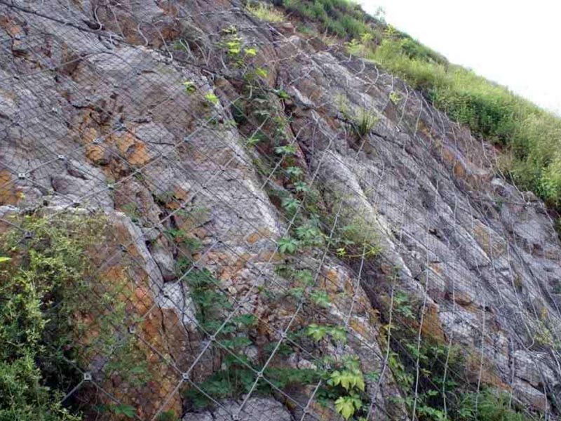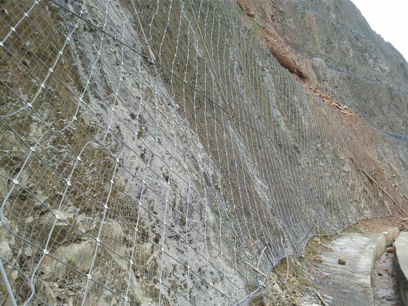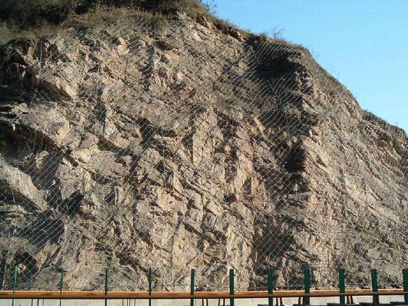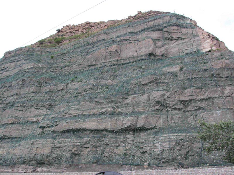 SNS主動(dòng)邊坡防護(hù)網(wǎng)系統(tǒng)由柔性菱形鋼絲繩網(wǎng)+鋼絲繩錨桿+支撐繩+縫合繩等配件構(gòu)成整個(gè)系統(tǒng),以覆蓋、緊固坡面的方式來防治坡面巖石崩塌、滾落、飛石等危害。技術(shù)已經(jīng)相當(dāng)成熟,近年來在國內(nèi)得到了極為廣泛的應(yīng)用。